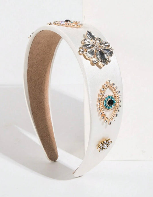 1pc Vintage Headband With Beaded & Pearl Decoration Royal